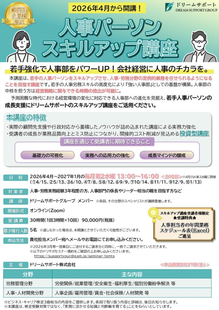 【講座】2026年4月開講:人事パーソンスキルアップ講座